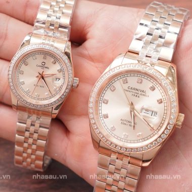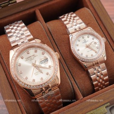Đánh giá Đồng Hồ Carnival Couple 8131G2 Nam – 8131L2 Nữ Rosegold Mặt Be Viền Đá
