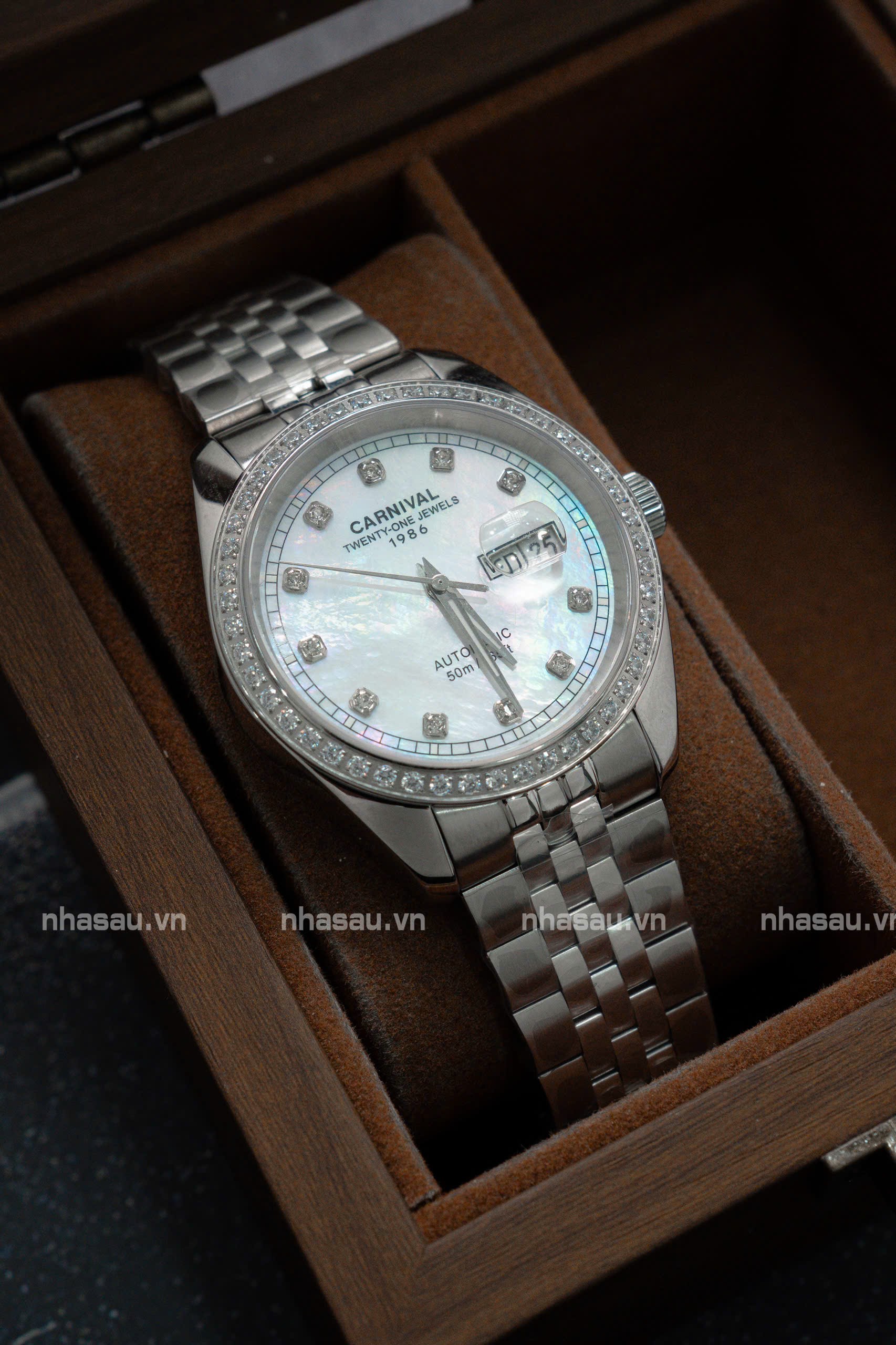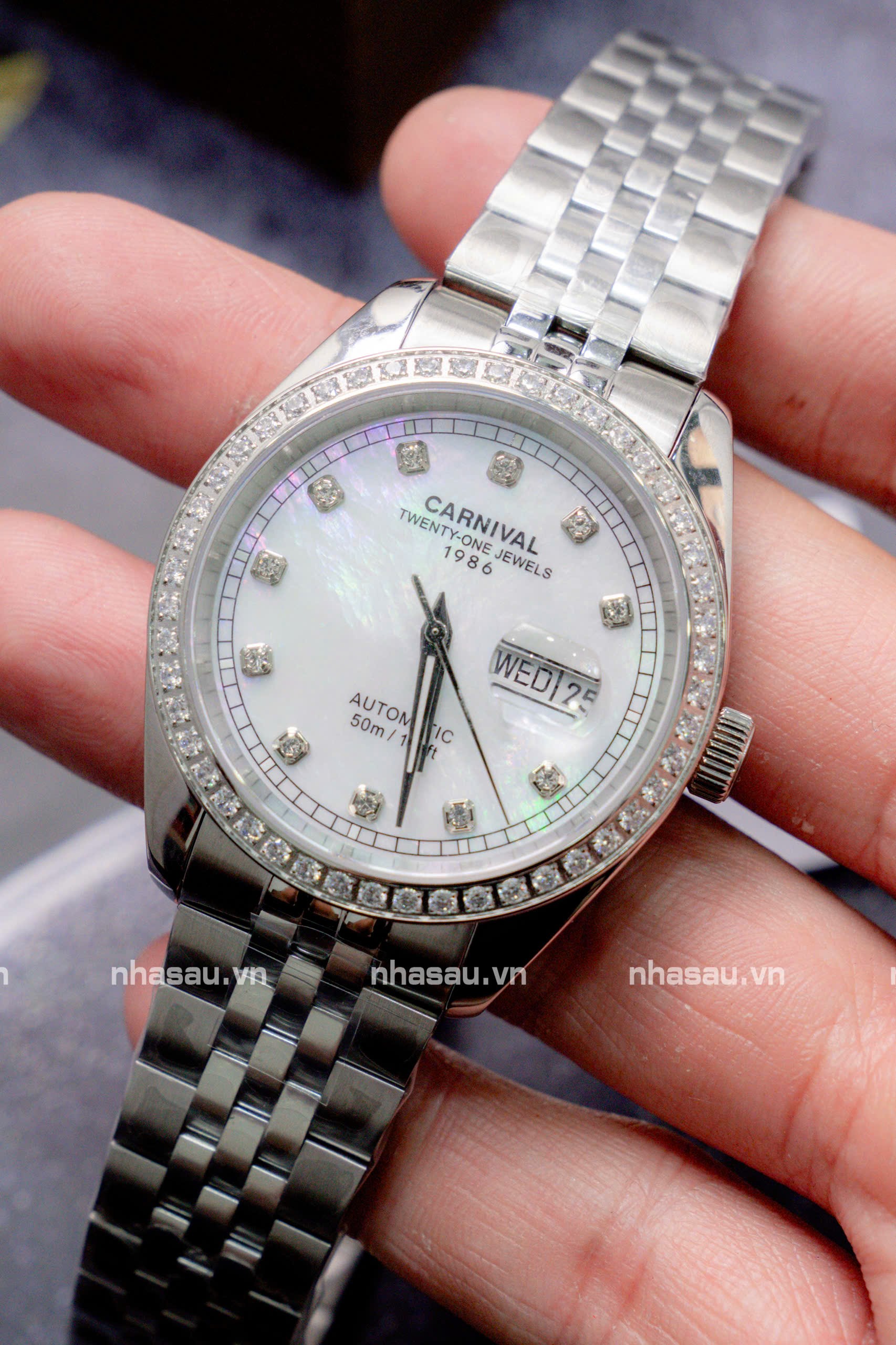Đánh giá Đồng Hồ Carnival Nam 8131G2 Mặt Xà Cừ Trắng Viền Đá