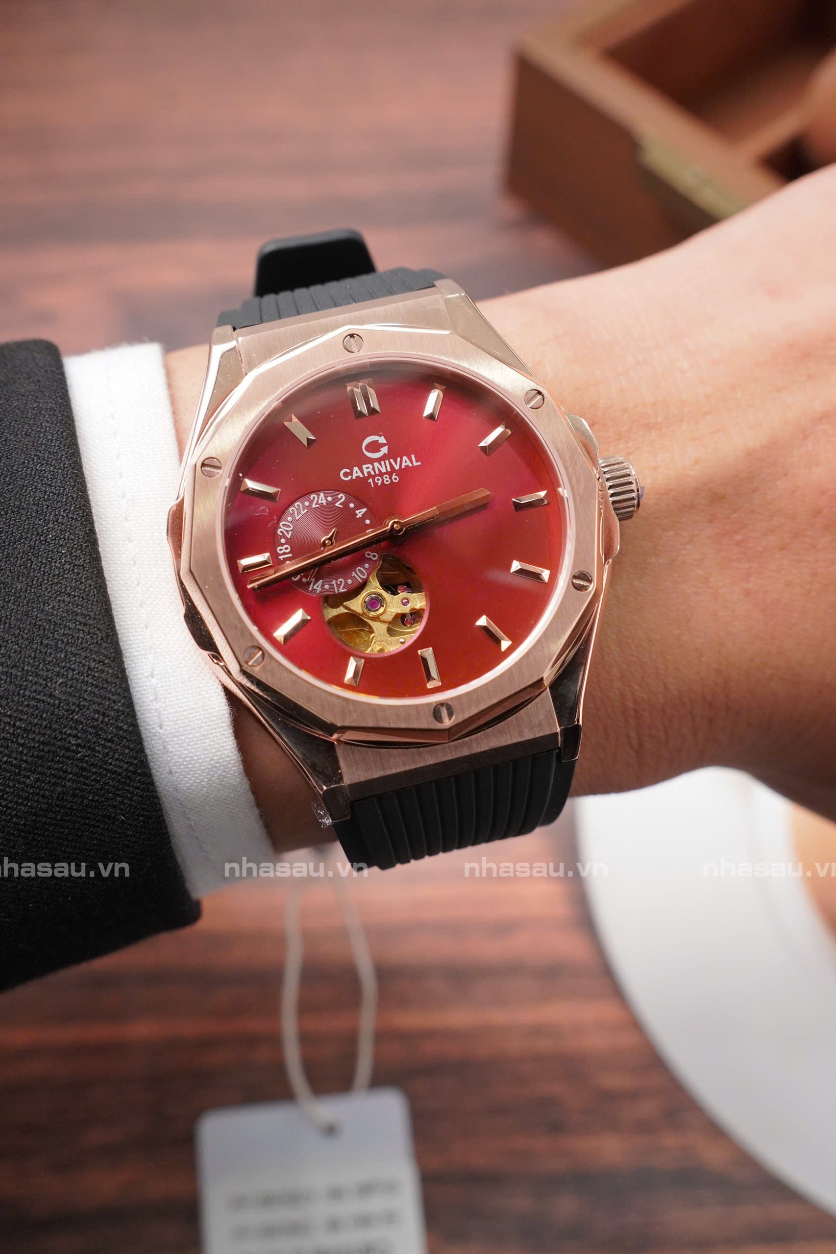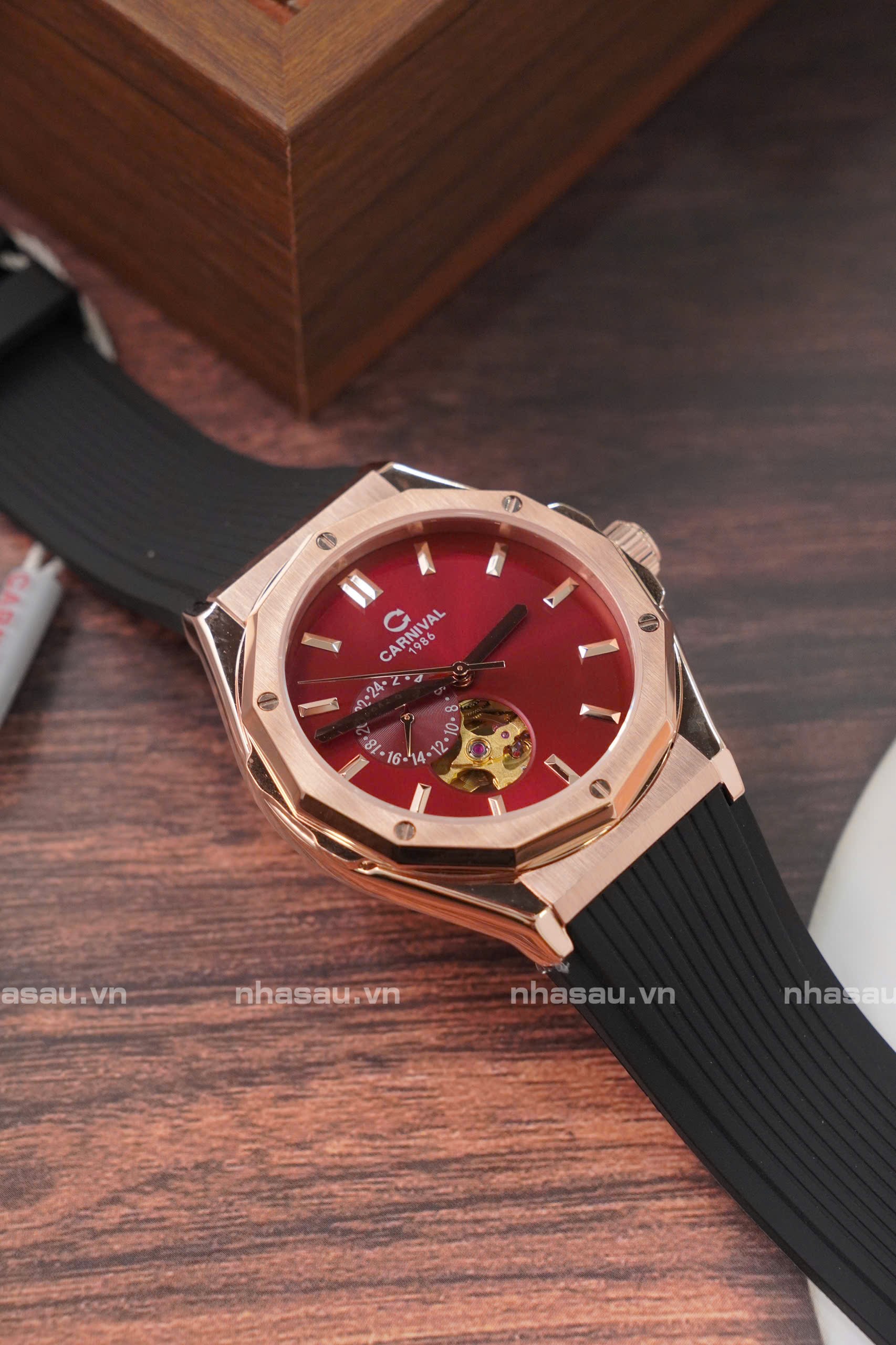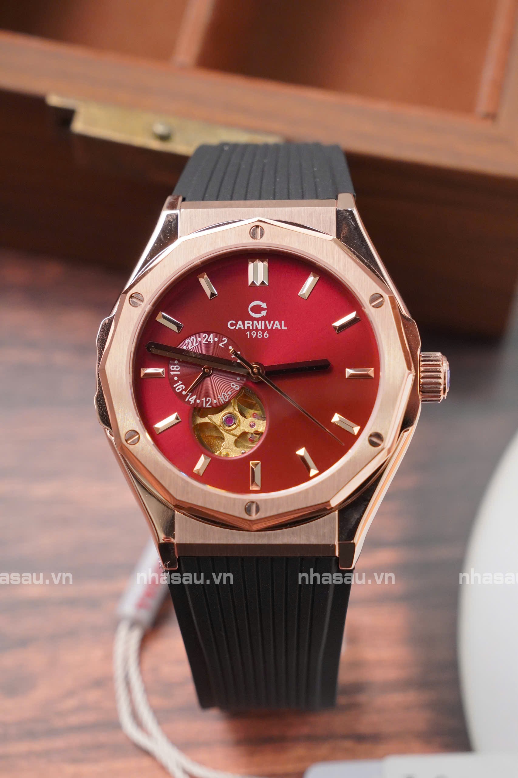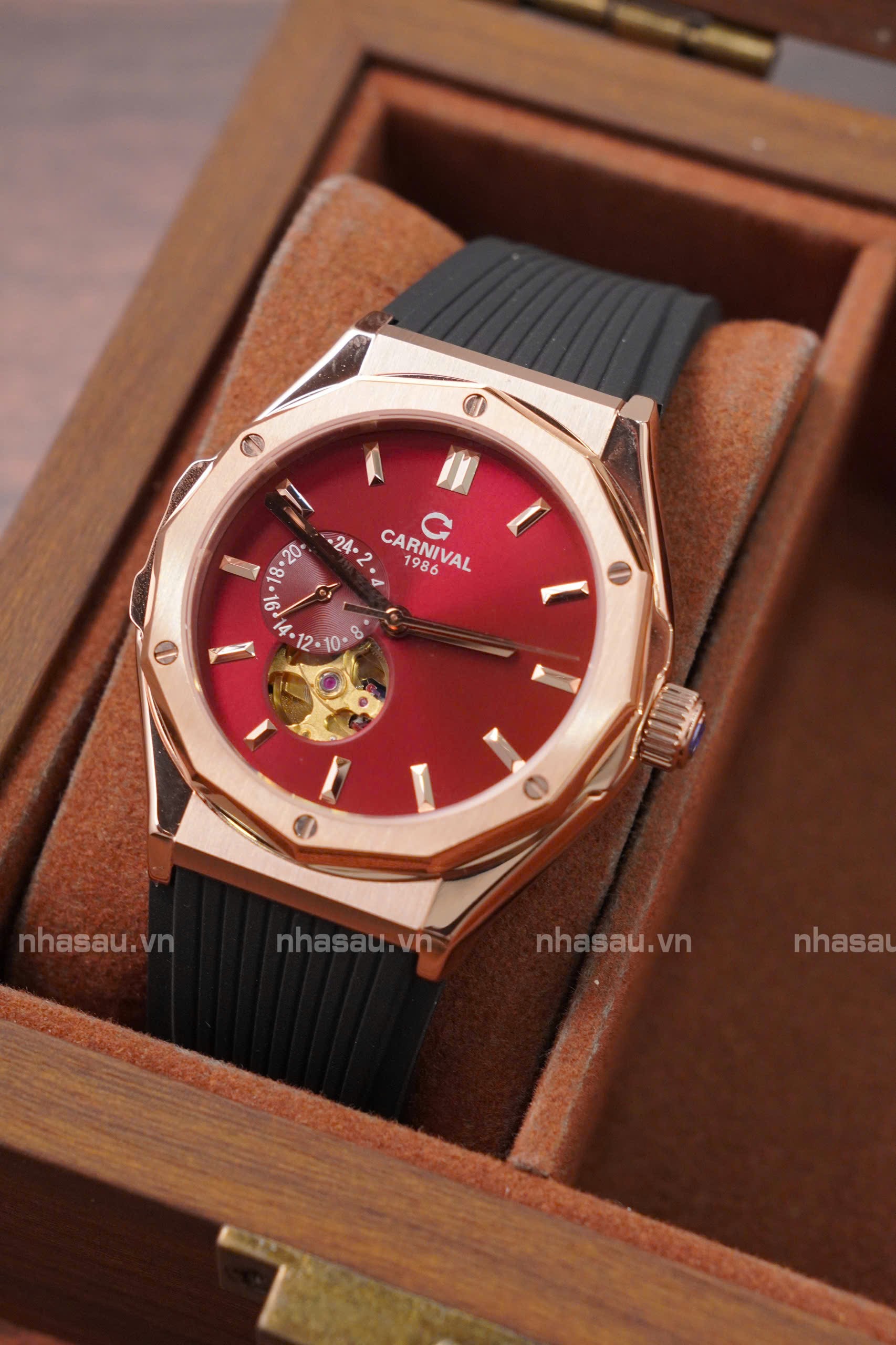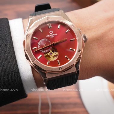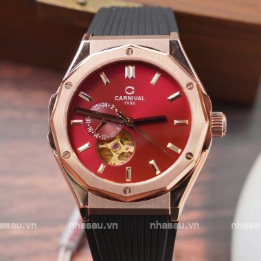 Đồng Hồ Carnival Nam 8189G Viền Rosegold Mặt Đỏ