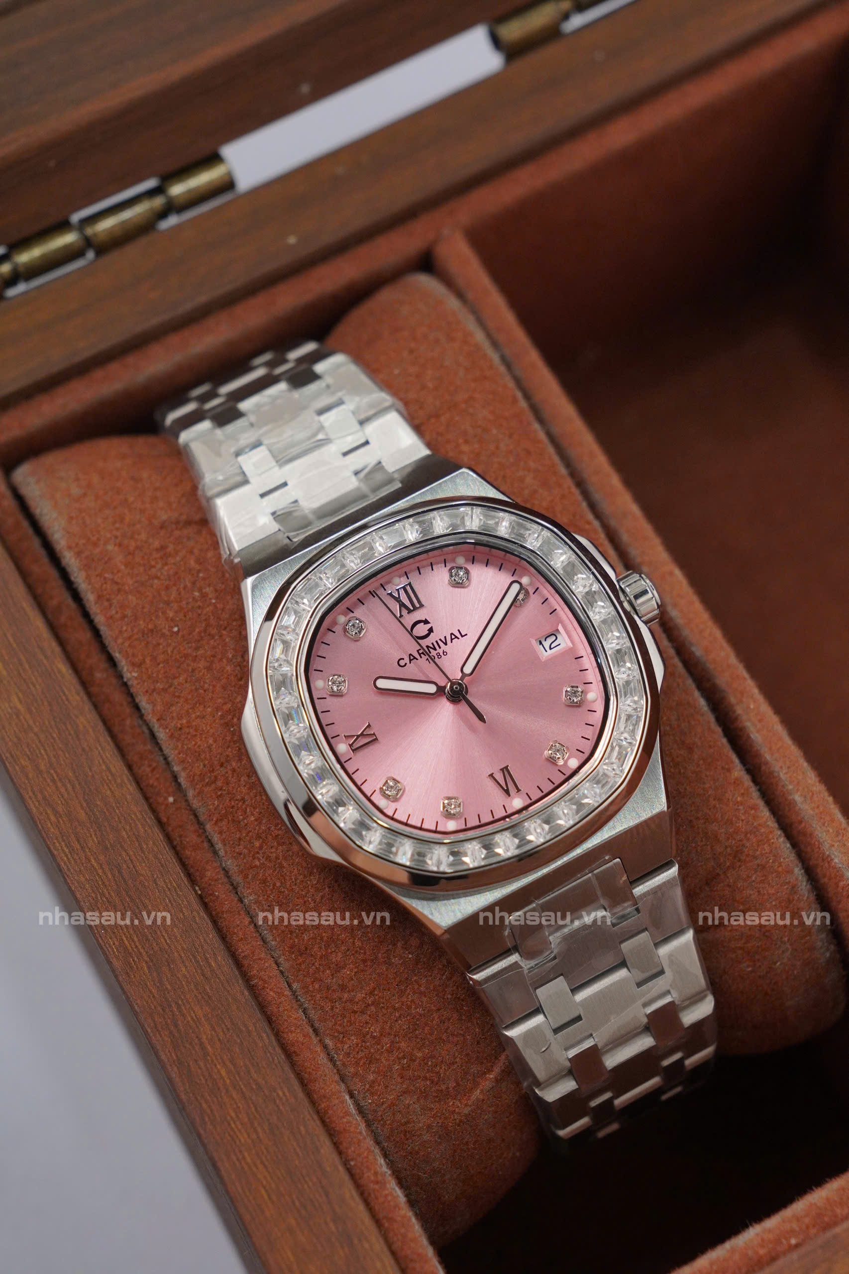 Đánh giá Đồng Hồ Carnival – Nữ 8160L2 Mặt Hồng Viền Đá