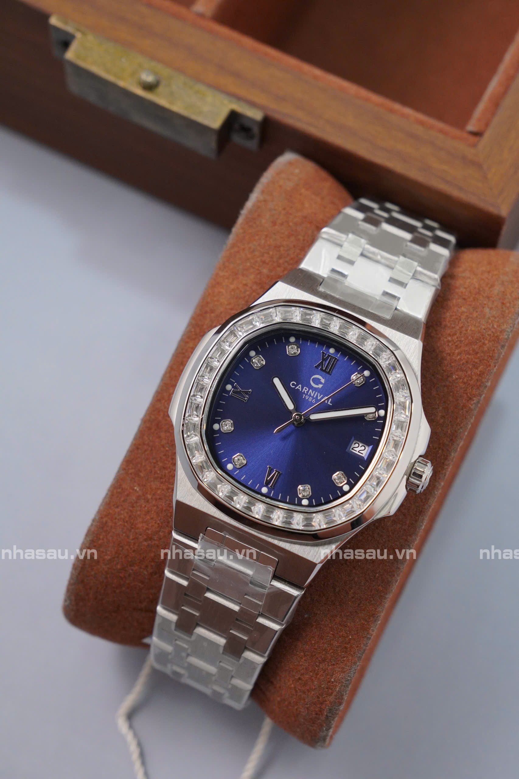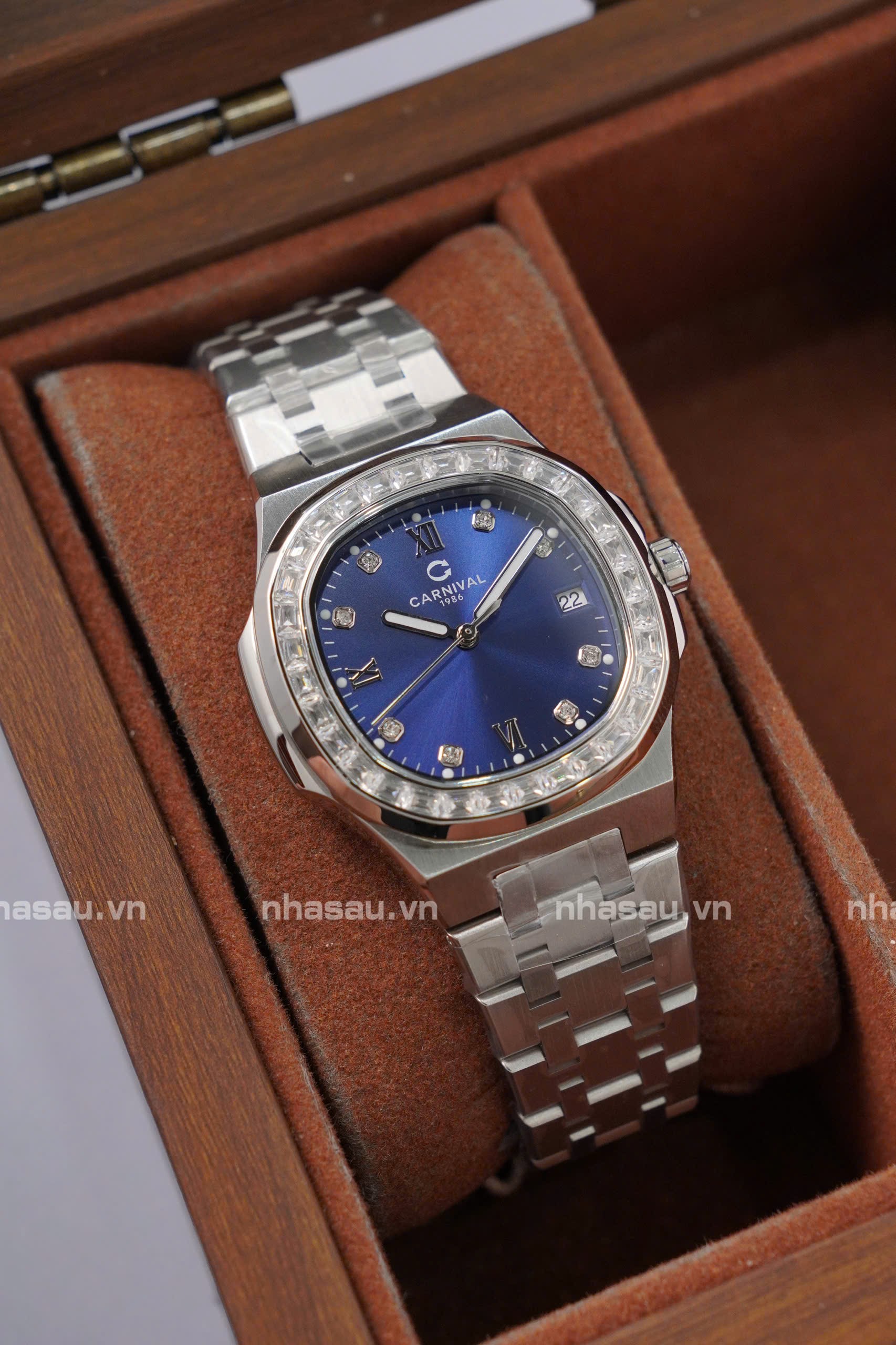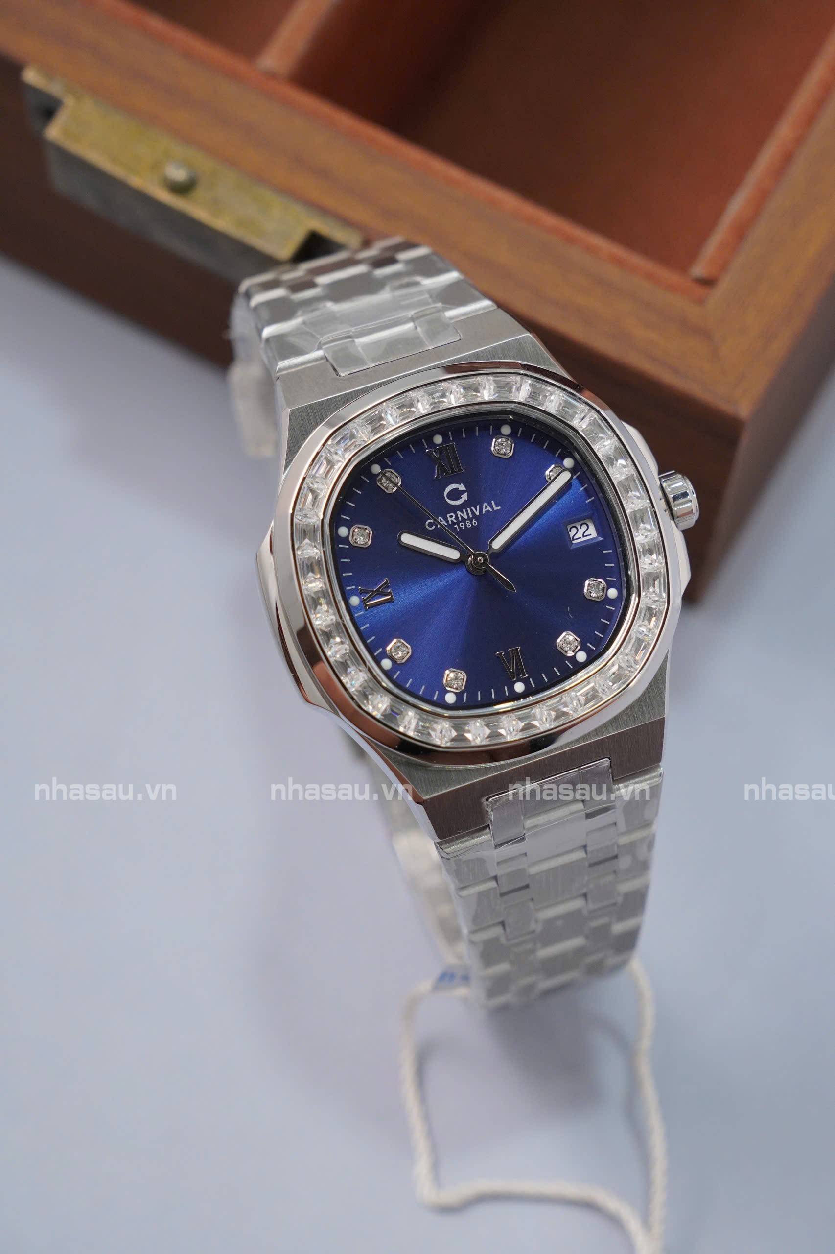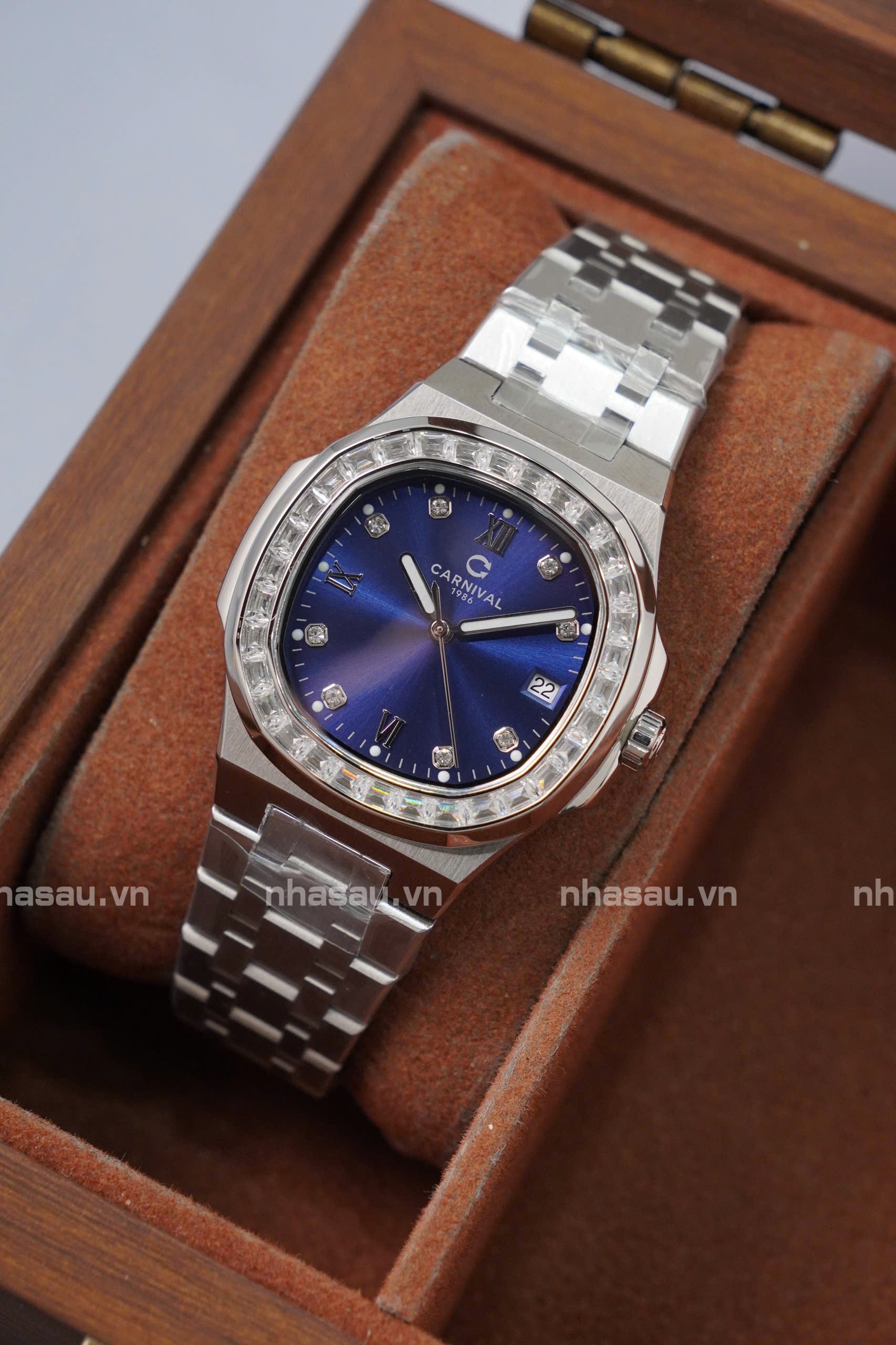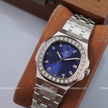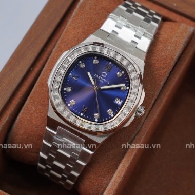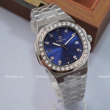 Đồng Hồ Carnival – Nữ 8160L2 Mặt Xanh Dương Viền Đá