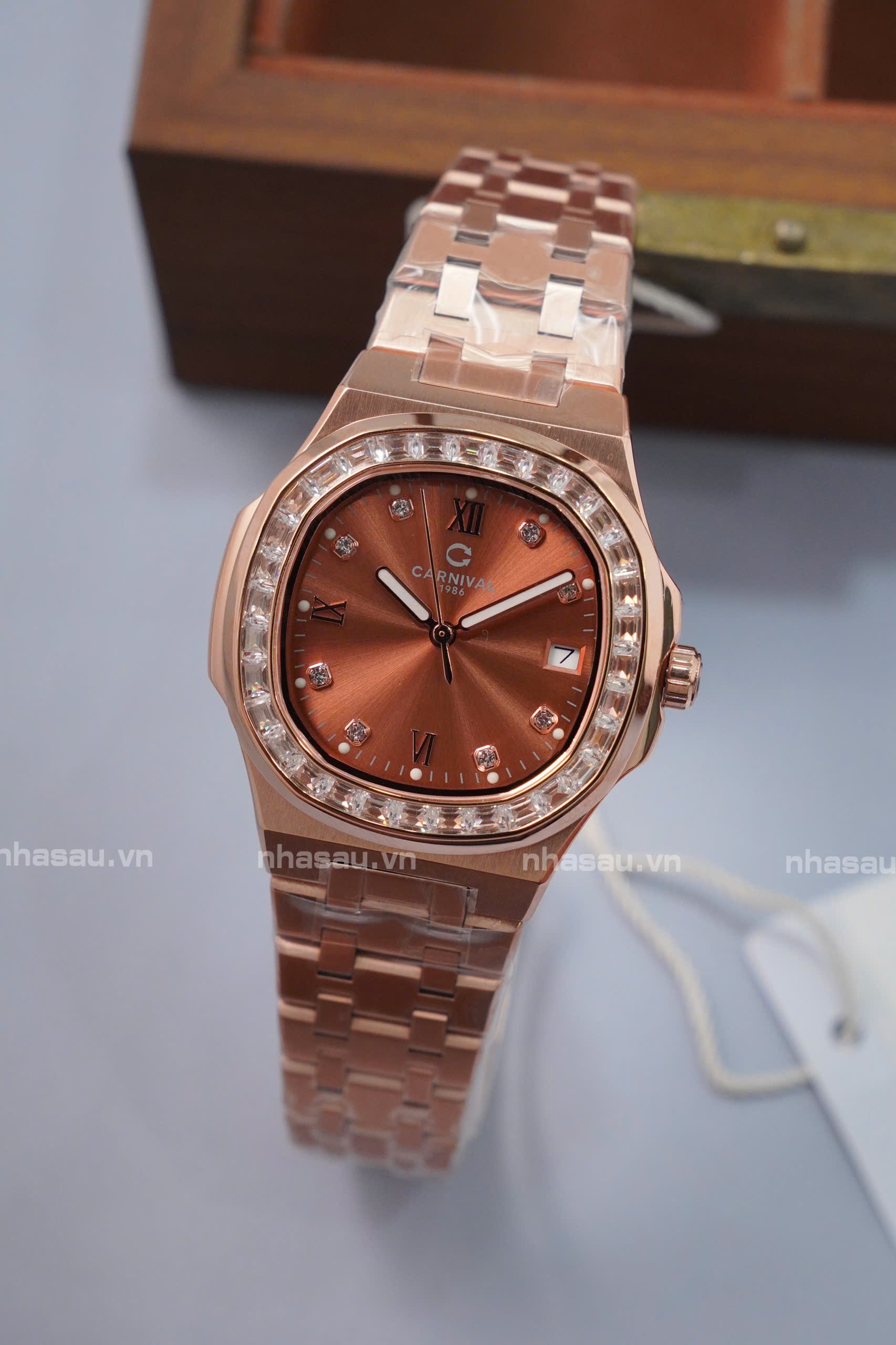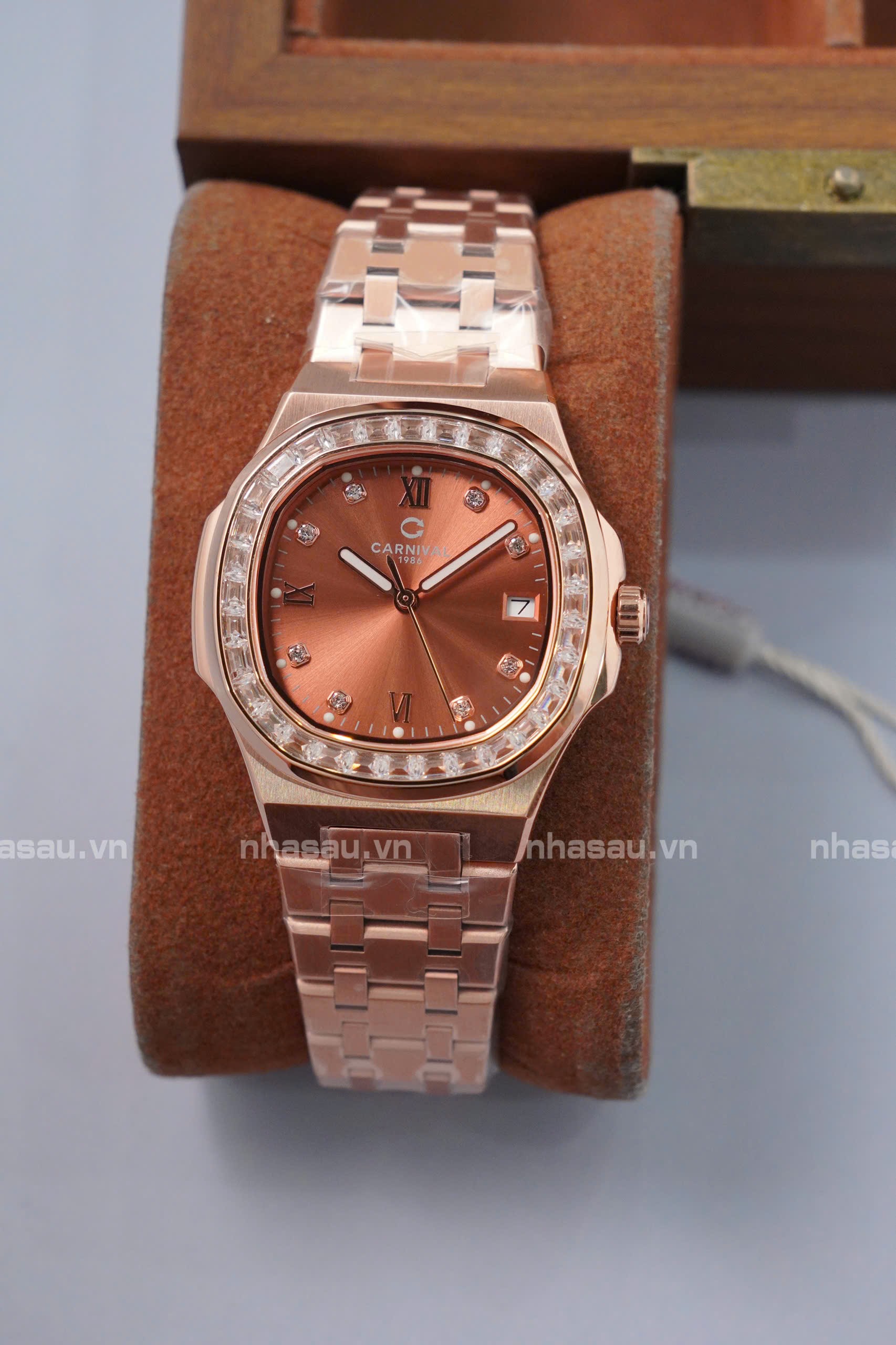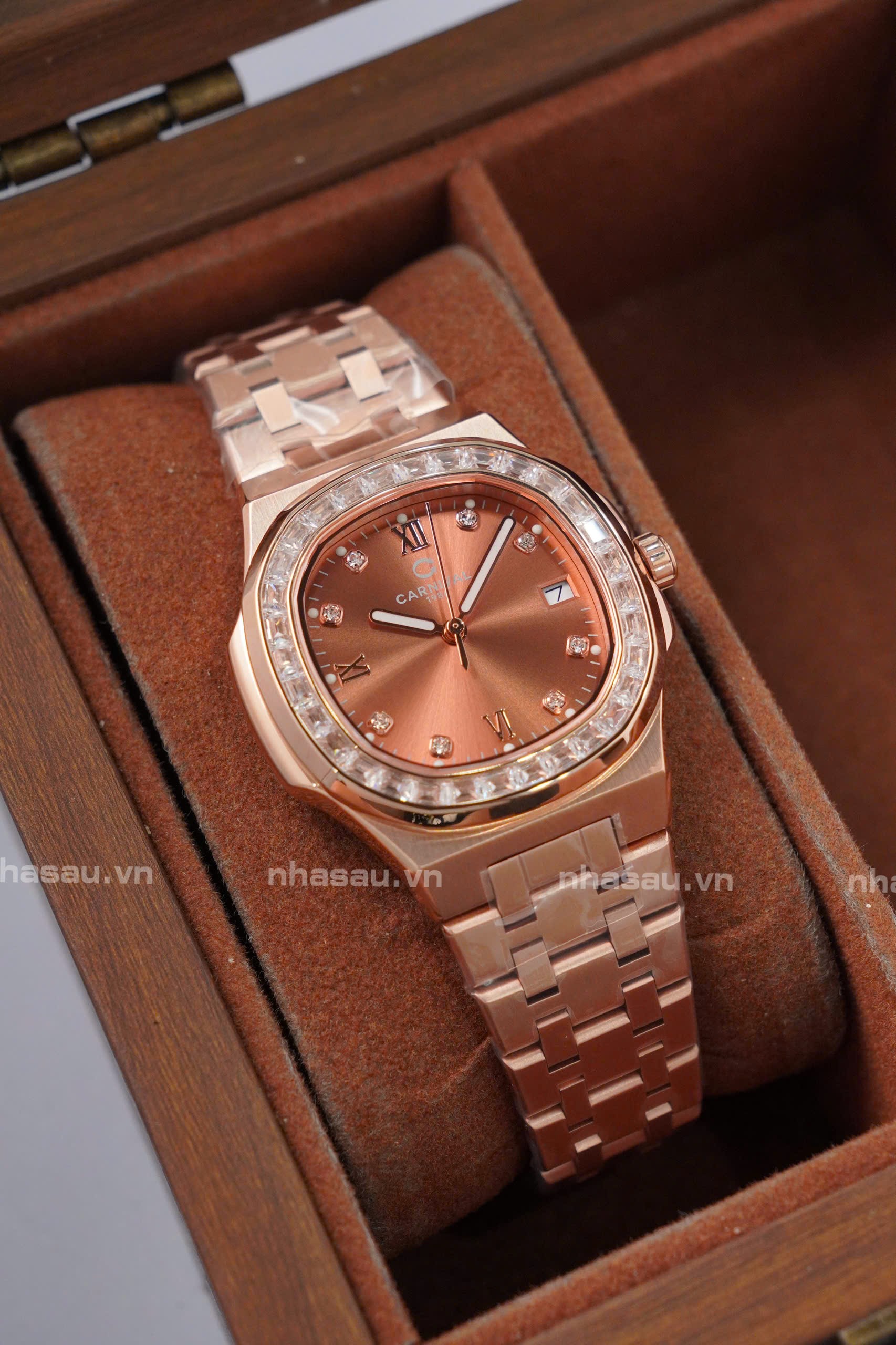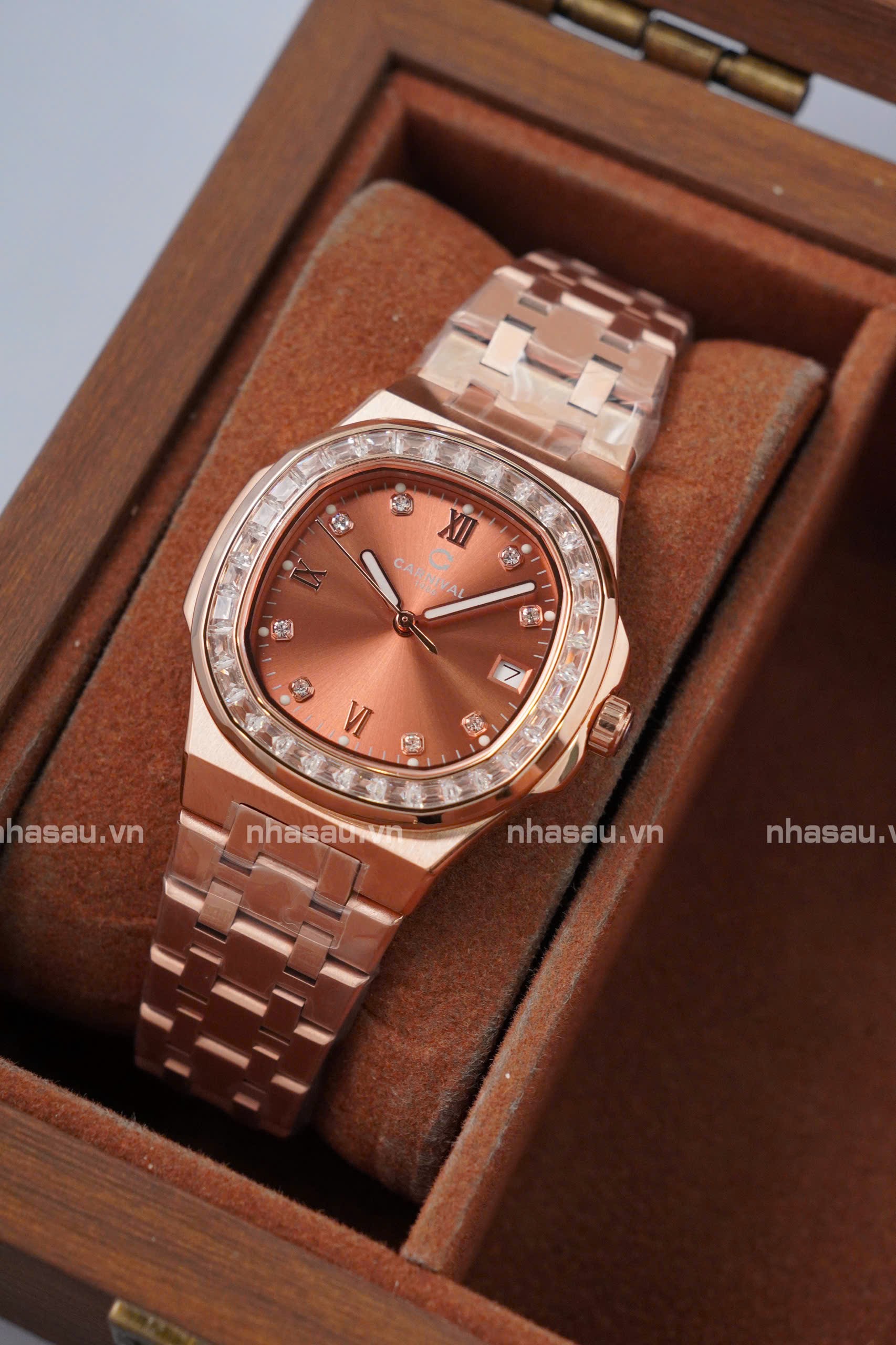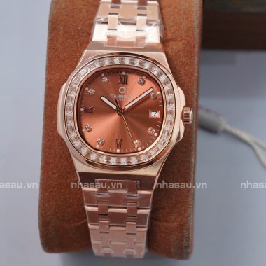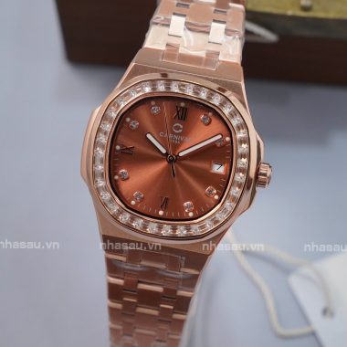 Đồng Hồ Carnival – Nữ 8160L2 Rosegold Mặt Nâu Cá Hồi Viền Đá